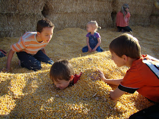 The first slide was really slow and boring. The second was thrilling, but painful for poor Joey since all the corn at the bottom was gone and he landed on hard ground.